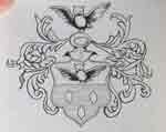 15,6,1541 in Regensburg Wappenverleihung durch Kaiser Karl V. = zwei Eulen und drei goldene Steine darstellend.