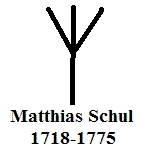 Vater: Friedrich SCHUL_Georg SCHUL ______ | (1625 - ....)x1651 _Johann SCHUL ______| | (1652 - 1699)x1688 | | |_Agnes ENDRIEß ____ | (1620 - 1669)x1651 _Friedrich SCHUL ____| | (1691 - 1750)x1717 | | | _Matthias THELEN __ | | | (1622 - 1689)x1654 | |_Elisabeth THIELEN _| | (1665 - 1715)x1688 | | |_Elisabeth TERNES _ | (1636 - 1717)x1654 | |--Matthias Sen. SCHUL | (1718 - 1775)x1750 | _Peter FISCHER ____ | | (1614 - ....)x1651 | _Balthasar FISCHER _| | | (1656 - 1703)x1683 | | | |_Catharina MENTEN _ | | x1651 |_Margarethe FISCHER _| (1687 - 1738)x1717 | | _Peter WILGES _____ | | (1629 - 1688)x1654 |_Johanna WILTGES ___| (1655 - 1703)x1683 | |_Gertrud LORENTZ __ (1626 - 1696)x1654