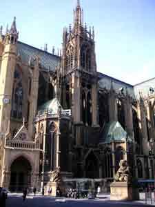 Auf einer großen Übersichtskarte suche ich mir eine "kleine" Straße raus. Wir finden diese Ausfallstraße schnell und los gehts. Der Verkehr hält sich in Grenzen und nach weiteren 35 km sind wir im Zentrum von Metz. Nicht ohne eine Ehrenrunde im Vorort gedreht zu haben.