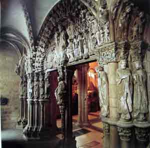 Im Porticus (Hauptportal) der Kathedrale sind u.a. auch die vier Evangelisten in Stein verewigt. Johannes zeigt dabei ein starkes Lächeln. Er ist die älteste romanische Abbildung, die offen lächelt, während alle anderen Figuren ansonsten ernste Gesichter zeigen.