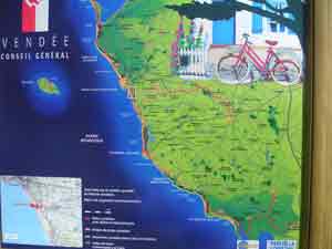Vor der Umfahrung der Bucht von Aiquillon hatte ich Bedenken, denn meine Karte zeigte nur Wasseradern und keine Wege. Aber der hier gut ausgeschilderte Radweg führte uns durch das Labyrint aus Wassergräben gut hindurch. Die zickzack laufende Strecke war etwa so lang, wie die Straßenkilometer.