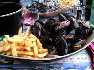 Beispiel: Vorspeise 6 Austern (Nr 3!), Hauptspeise Muscheln satt mit Fritten , Dessert Crepe nach Wahl für ganze 12 €uro. Fleischgerichte sind viel teurer.