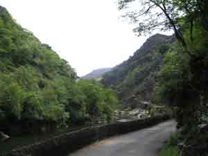 Einen 150-m-Hügel der Umgehungsstraße wollen wir uns schenken und weichen auf das alte, dem Flußlauf folgende Sträßchen aus. Rollt prima, bis zum Pas de Roland. Bergauf, Bergab, und immer so steil, daß wir meistens schieben. So werden aus den gesparten 150 m mehr als 500 m.