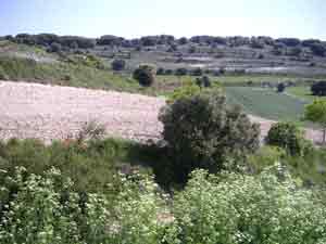 Der Original Camino ist hier von der EU neu neben der Straße angelegt und als Schattenspender mit Bäumen bepflanzt. Ein Kiesweg, der auch für Radfahrer sein soll. Wir bleiben jedoch auf der geteerten autolosen Straße.
